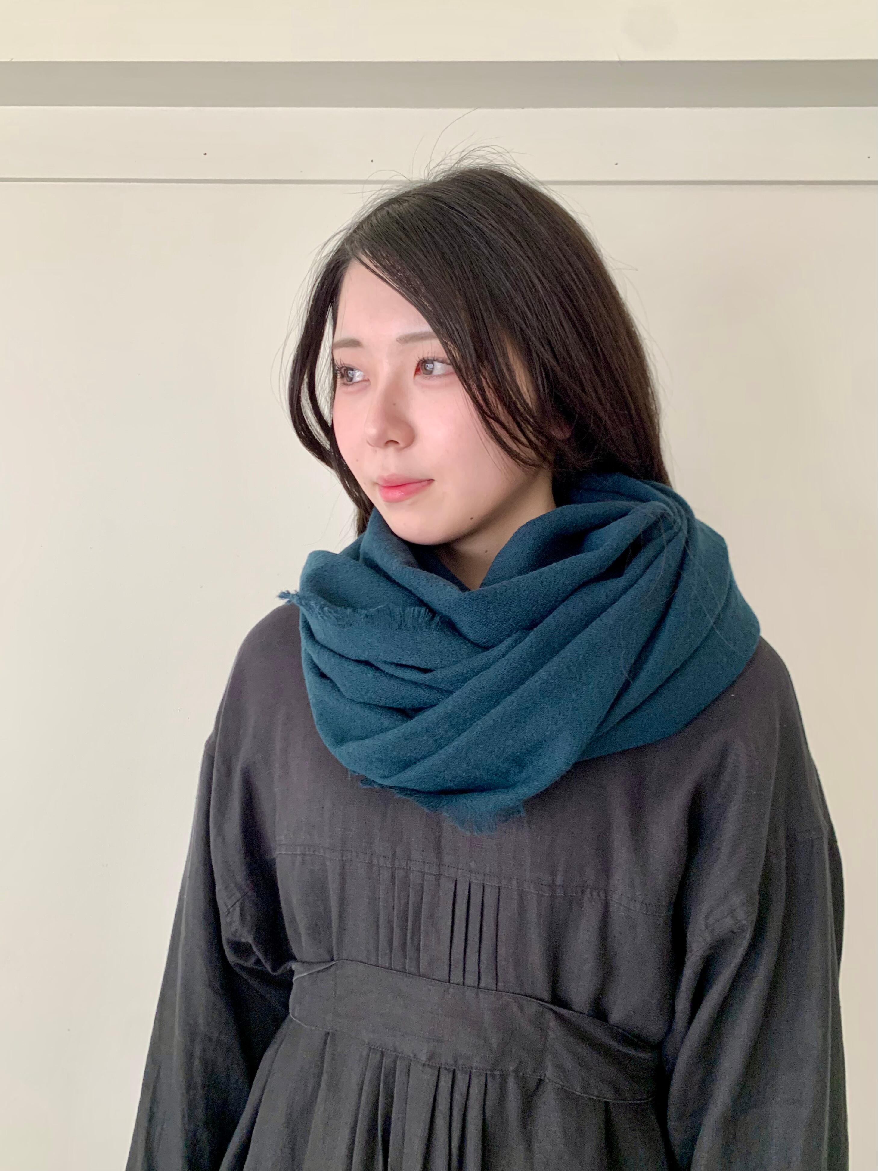 軽やかなウールガーゼで仕立てたストールです。さらりとした肌触りと温かさを兼ね備え、季節を問わず活躍するアイテムです。
